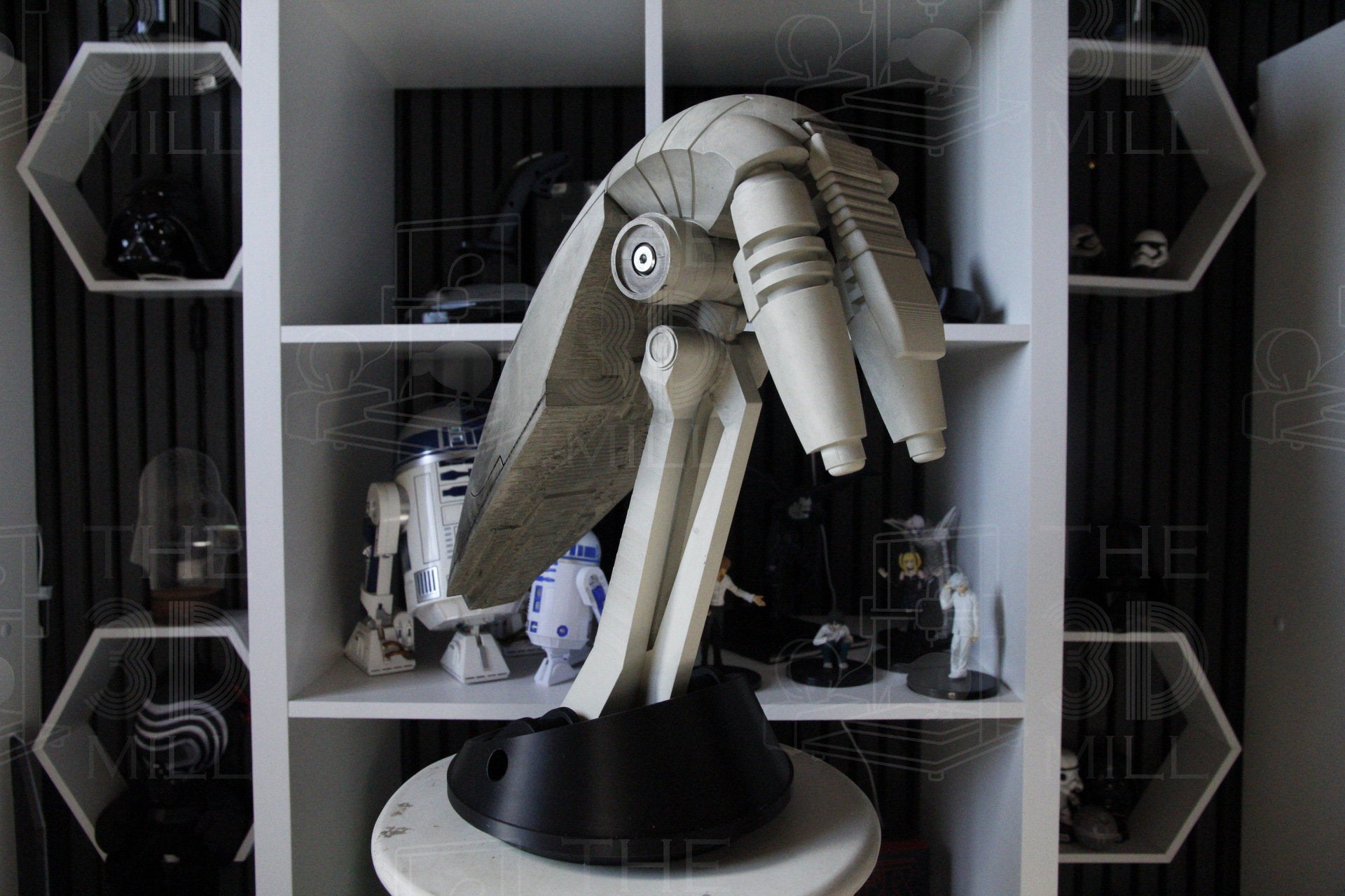While all due-diligence and mitigations are put in place, due to the manufacturing process we cannot guarantee an absolute flawless production. The 3D Mill keep at the forefront of 3D Printing technology using the most advanced equipment and techniques to provide the best quality possible. Generally any defects are not visible at standard viewing distance with the exception of some joins of larger parts that have been split into multiple. If you would prefer joins not to be visible, this requires extensive filling, sanding, priming, and painting. Please contact us with your requirements and we will happily quote up your droids custom requirements.